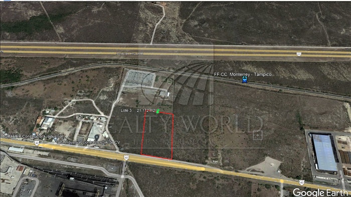 Se vende terreno industrial en breña, casi plano, con 120 m de frente a la carretera Monterrey - Reynosa y una superficie de 21,173 m2. Ideal para industria mediana y ligera, centro de distribución, patio de servicio y encierro de camiones u otros usos. (27-TV-4241). Puede triplicarse la superficie a ocupar (7.6 ha), pues colinda con otro dos lotes en venta de dimensiones similares.
