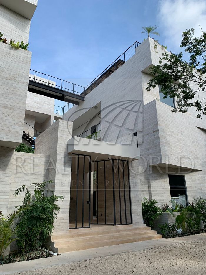 Estudio en Venta en 525 Tulum es un desarrollo moderno, minimalista y sustentable de solo 18 unidades distribuidas en 2 Torres de 3 pisos, donde te encontraras rodeado de áreas verdes y naturaleza, ya que se preserva mas del 50% de la selva. Ubicado a 3 minutos de Holistika. Todas las amenidades se encuentran en el rooftop, al cual se puede subir con elevador, y ambas torres se conectan mediante un SKY bridge