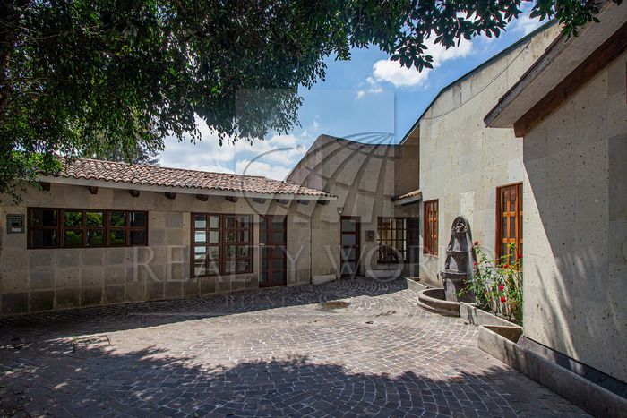 La planta baja aloja una gran sala de doble altura con grandes domos que permiten la entrada de luz natural, detalles en cantera y bodega para vinos, una gran cocina integral semiequipada, dos tarjas y un gran espacio de alacena, un gran espacio para antecomedor separado de la cocina, un área de comedor bañada con detalles de luz indirecta y un gran ventanal con vista y salida al jardín trasero, área para salón de juegos o family, 3 habitaciones secundarias, cada una con baño completo y una de ellas con vestidor y salida directa al garage. El jardín trasero está equipado con asador, alberca climatizada, gimnasio, 2 medios baños, ampliar áreas verdes y un gran espacio adornado por una pergola de vigas estilo colonial. Al lado de la cocina se encuentra el acceso para la casa de choferes o servicio con estancia, 2 habitaciones, baño y cocina propios, tiene acceso directo a la casa o desde el garage, también tiene un pequeño cuarto de servicio o bodega en el patio de servicio. El espacio de estacionamiento puede albergar hasta 10 autos.