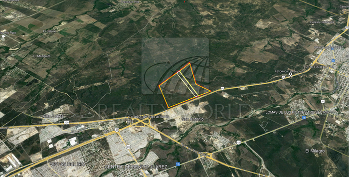 Se vende terreno de 188 has. en Juárez, NL, (27-TV-4818) con frente de 1320m a la Autopista Monterrey-Reynosa y vías del FFCC a Tampico; cuenta con uso industrial y habitacional de alta densidad (90 Viv/ha). USD $35/m2