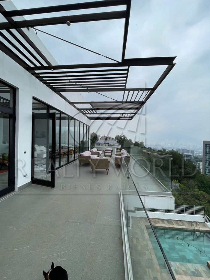 - Sala muy amplia, con techos muy altos y salida a terraza con barandal de vidrio templado, la cual cuenta con una sala y vista a la ciudad