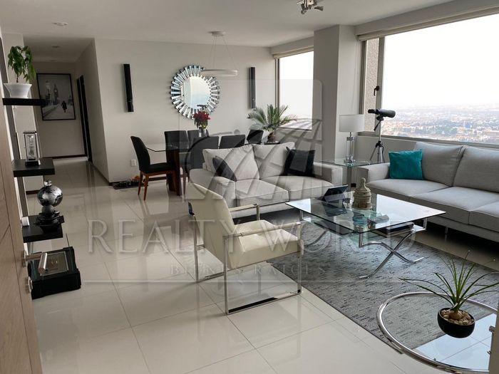Renta de Amplio Departamento en exclusivo residencial (Miraval III) cercano a Ciudad Satélite con vistas espectaculares del Valle de México; distribución optima de cocina integral abierta, comedor y estancia con medio baño de visitas; la estructura arquitectónica del edificio cuenta con excelente orientación que permite una ventilación funcional; además de climatización e iluminación natural y artificial que destacan y lo hacen muy confortable. El diseño y distribución está aprovechada al máximo con 3 habitaciones, donde la principal tiene walking closet y baño amplio, las 2 habitaciones junior de buen tamaño que comparten segundo baño completo, cuarto de servicio con área de lavado, cuenta con 2 lugares de estacionamiento techado y una bodega.