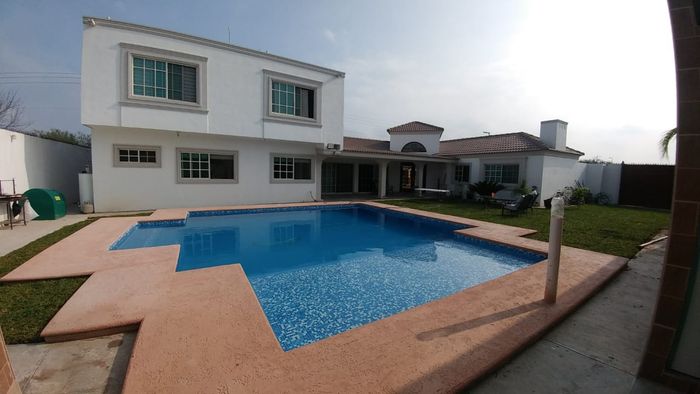 Alberca, jardín amplio y palapa.
