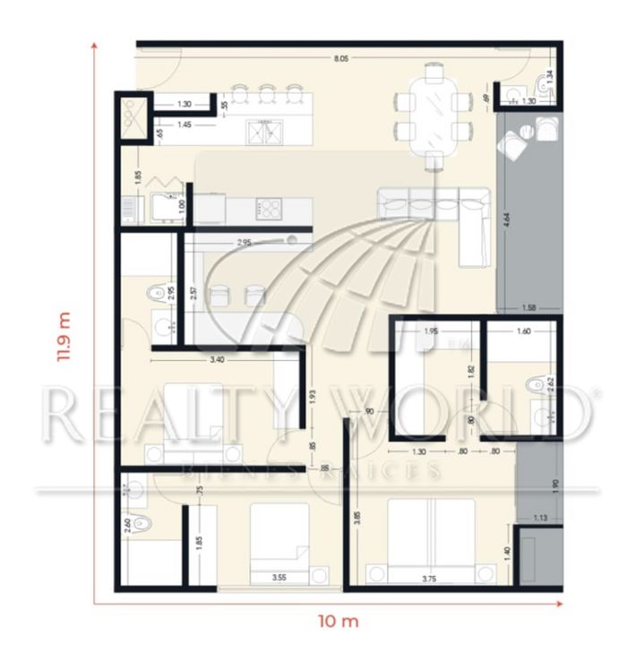 Departamento de 130 m2 Modelo Destella con la siguiente distribución:
