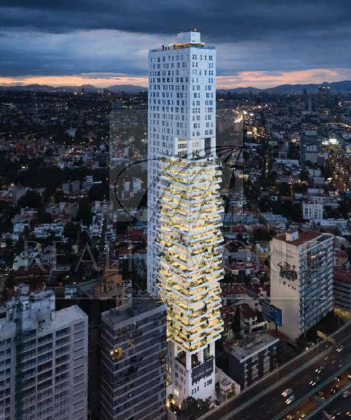 El edificio cuenta con amenidades como son lobby, sky pool, gimnasio, spa, carril de nado, sala de cine, salón de eventos, estacionamiento para visitas, seguridad 24Hrs.