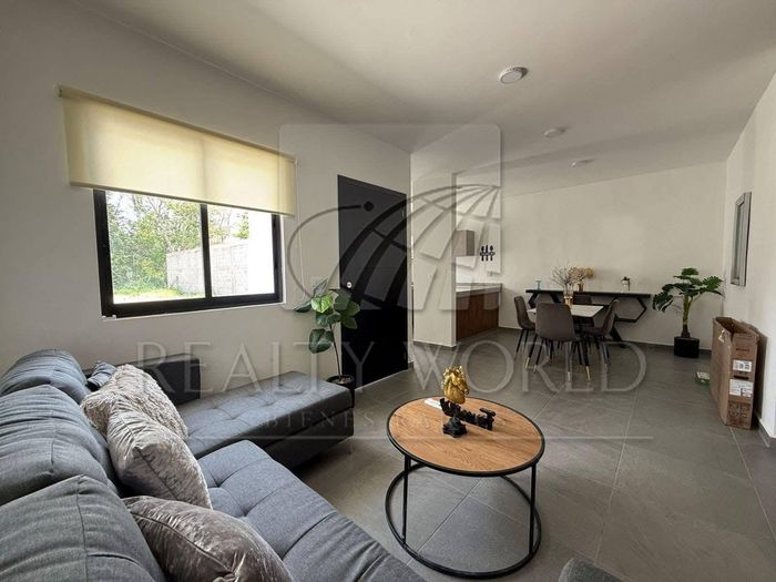 Distribución. Estacionamiento para 2 autos, sala-comedor, cocina totalmente equipada con tarja, parrilla, gabinetes de cocina, barra de granito, recámara principal con vestidor y baño completo, recámara secundaria con clóset, baño de visita completo y centro de lavado oculto.