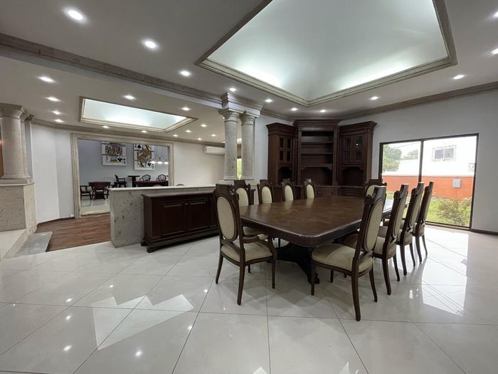 CASA CUENTA GRANDES ESPACIOS Y TECHOS ALTOS Y VISTA A LOS JARDINES , SALA COMEDOR MUY AMPLIAS ANTECOMEDOR CON COCINA EQUIPADA, AREA DE OFICINA, Y SUS 3 RECAMARAS ADEMAS GIMNACIO