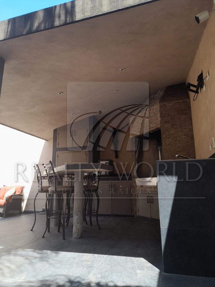 - Patio muy amplio con piso porcelanato, palapa con asador, barra social forrada con azulejo contemporáneo con 4 bancos, gabinetes y 4 spots en techo, preparación para TV de Cable y brazo empotrado en pared para TV.